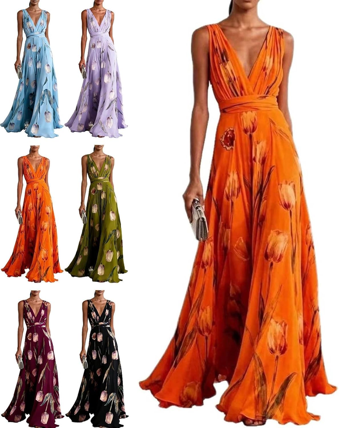 SPECIFICATION: Name: Chiffon Dresses for Women Fabric Name: Chiffon Fabric Composition: 95% Polyester, 5% Spandex Style: Spaghetti Strap Dress Length: Maxi Dress Combination: Single Piece Pattern: Floral Dress Type: A-line Dress Neckline: V-neck Sleeve Type: Sleeveless Waist Type: High Waist Popular Elements: Floral Fit: Slim Fit Placket: Pullover Size: S, M, L, XL, XXL Style: Elegant, Casual Suitable Occasions: Casual, Everyday, Dating, City Commuting, Beach Vacation PACKAGE INCLUDE: 1 PCS * Chiffon Dresses for Women